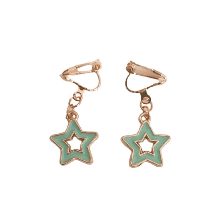 Green Star Clip On Earrings