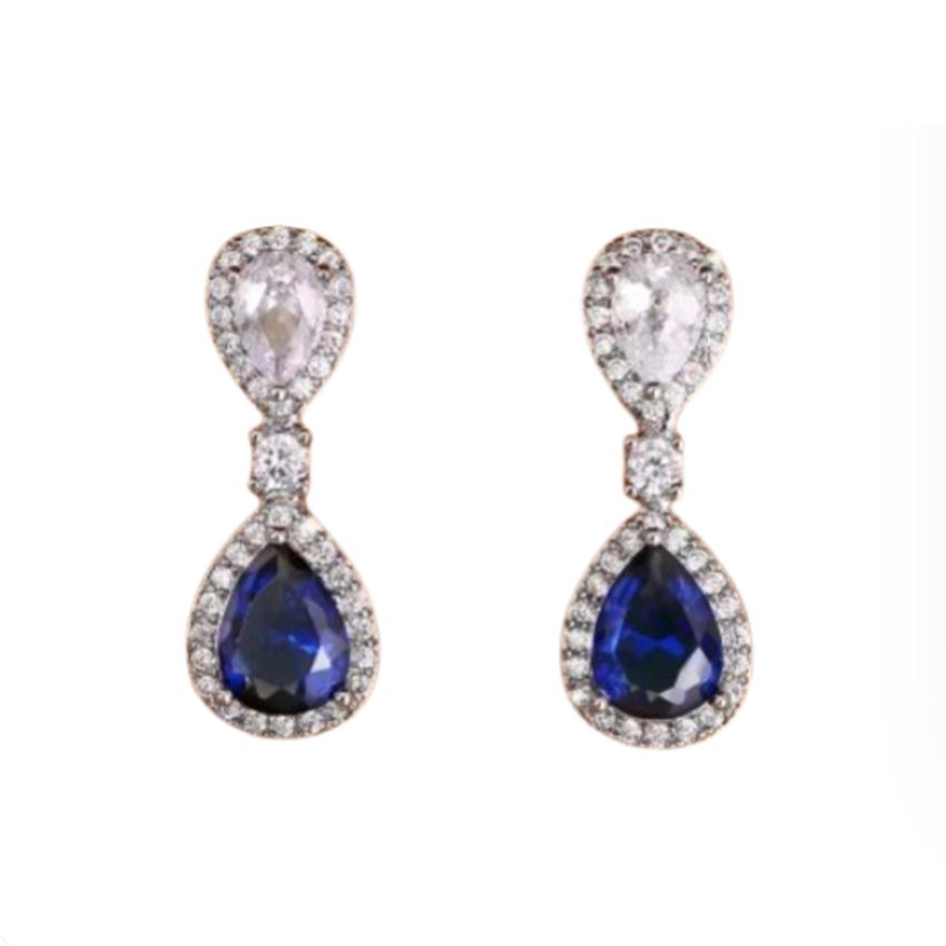 Blue drop dangly clip on earrings with diamante in a pretty pillow box, delivery in Ireland 1-5 days via An Post -