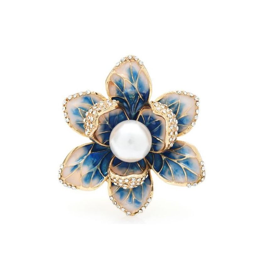 Blue Flower With Pearl Bead Brooch