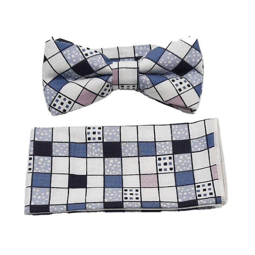 Blue Geometric Boys Dicky Bow And Hanky Set