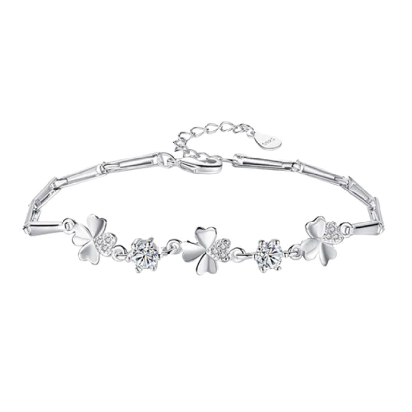 Clover Centre With Cubic Zirconia Stones Silver Bracelet