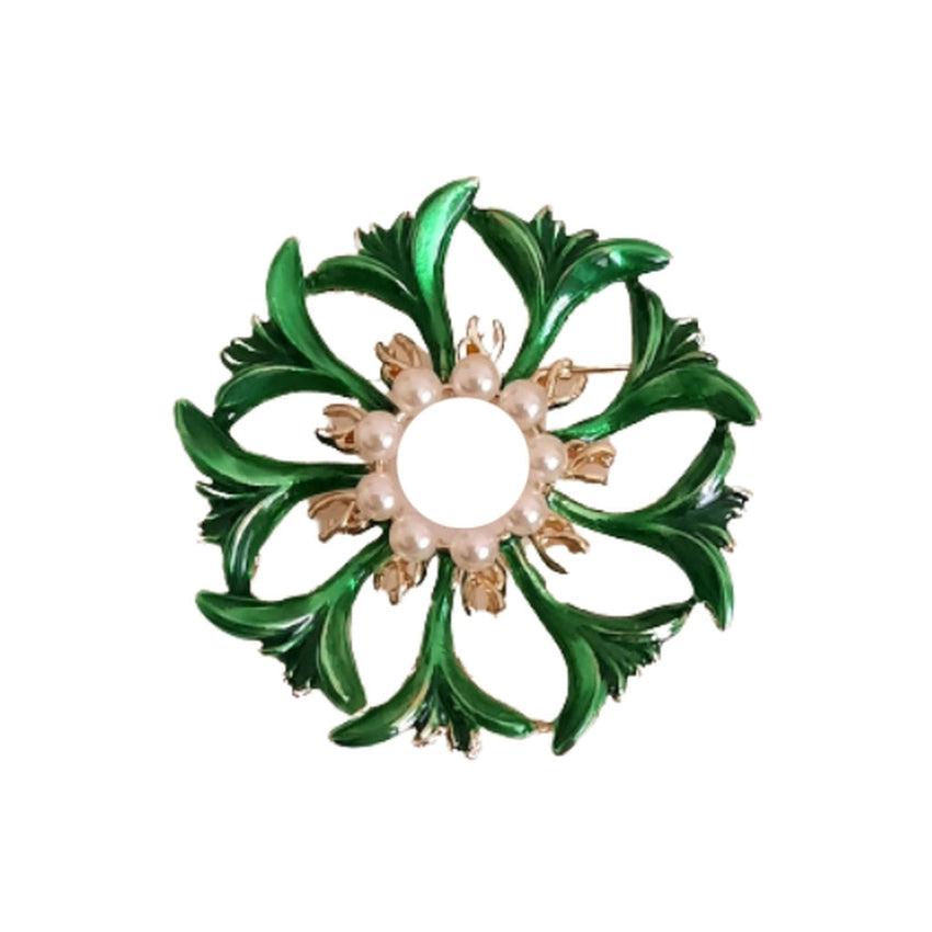 Emerald green brooch with pearl in a pretty gift box, delivery in Ireland 1-5 days via An Post -