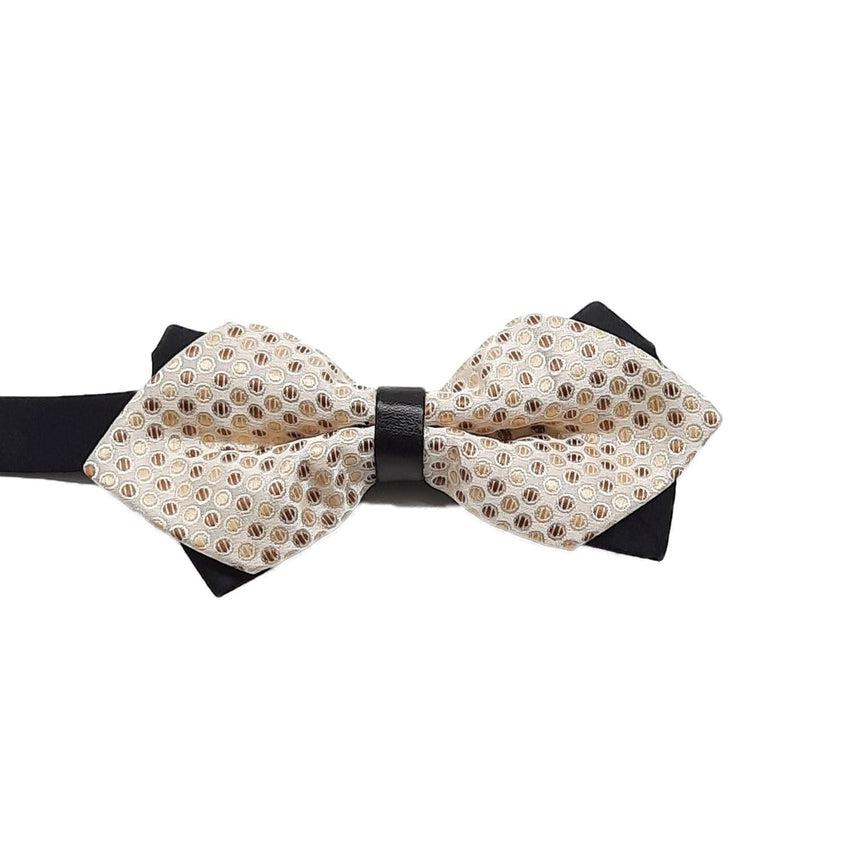 Gold pattern on a cream polyester background pointed edge adjustable up to 18" collar dicky bow tie on a black band, delivery in Ireland 1-5 days via An Post -