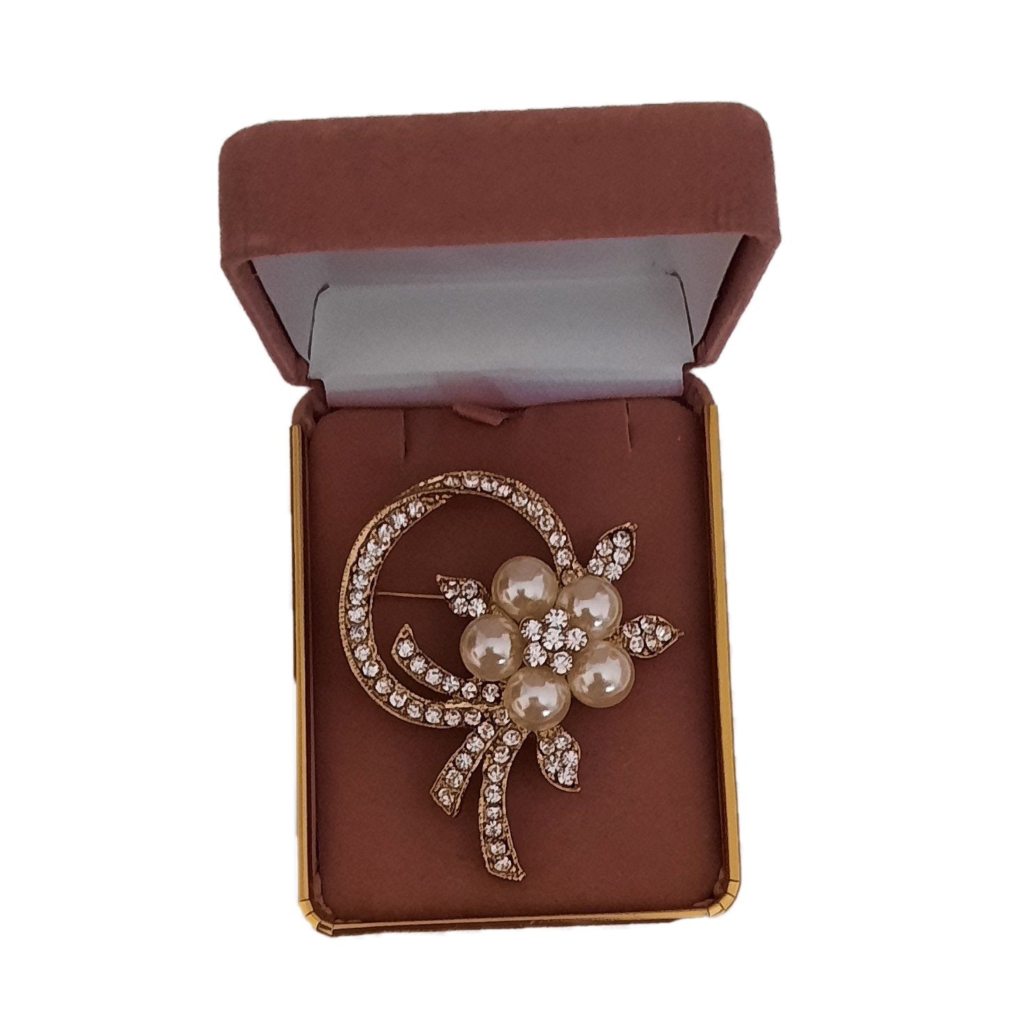 Gold with pearl flower brooch in a gift box, delivery In Ireland 1-5 days via An Post -