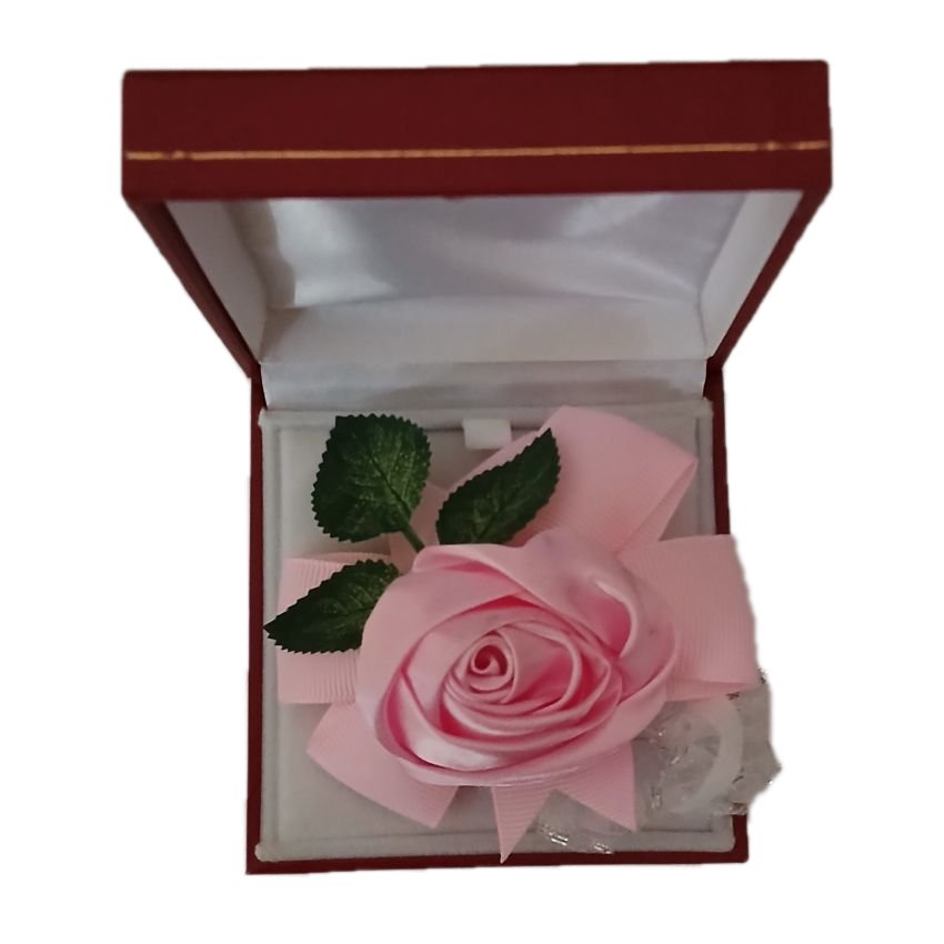 Pink rosebud flower wrist corsage, artificial flowers make lovely a keepsake memory of debs night, available in a variety of colours to match the shade of the dress, delivery In Ireland 1-5 days via An Post -