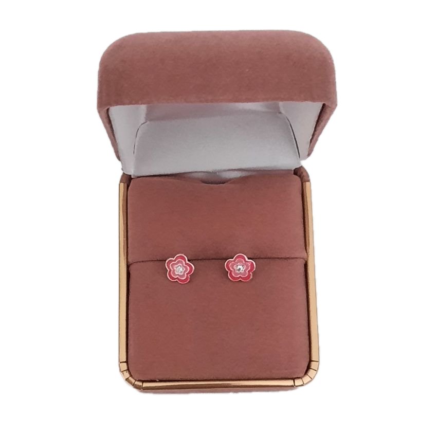 Sterling silver dark pink flower stud earrings in a pretty gift box, delivery in Ireland 1-5 days via An Post -